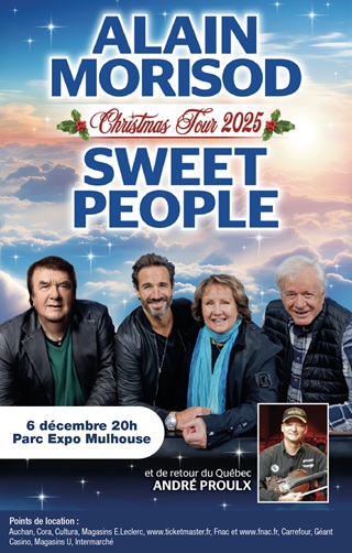 Alain Morisod & les Sweet People font étape au Parc Expo de Mulhouse le samedi 6 décembre pour un concert de noël d'une durée de 3 heures. Venez revivre les plus grands succès et leurs plus belles chansons pour un moment inoubliable.